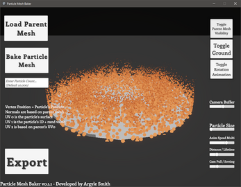 Simply import a mesh, select the desired number of particles, and export the baked particle mesh!